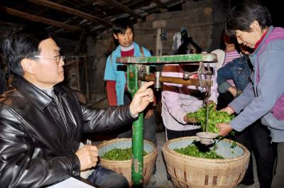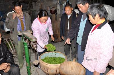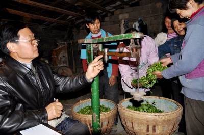 4月17日,笔者在恩施市红土乡天落水村看到,茶叶经纪人江心敬正在忙碌收购鲜茶叶。该市像江心敬一样的1000多名茶叶经纪人,将名优茶交易市场抬得红红火火,一派繁荣景象。据悉,茶叶经纪人这一行当在恩施农村的兴起,反映了当地农民商品意识的觉醒,很多农民从单纯的生产环节向加工流通环节分工,增加了收益,促进了产业良性发展。从而催生了一大批农村茶叶经纪人,在茶叶企业之外,架通了又一座农民联接市场的桥梁。目前,恩施茶产业已发展成为社会主义新农村建设一个重要的产业支撑点,有了大批土生土长的茶叶经纪人的带动,农民收入得到有效增加,社会主义新农村建设在恩施如同春季的茶园迸发出勃勃生机。(视界网签约摄影师彭绍峰摄)红土乡政府13329820218