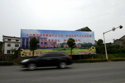 刹人情风人人有责 6月21日,在宜华一级路宜都市枝城段,一辆小车从刹人情风的巨型广告牌前通过。宜都市贯彻省市关于刹人情风的精神中,大力营造氛围,让全社会都来参与、监督刹人情风工作。