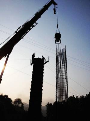 6月22日5时摄于郧县正在建设中的省道二级公路汉江南岸生态旅游路五峰乡鲍家河拱桥施工现场。环太极湖生态旅游路汉江南岸省道二级公路是南水北调中线水源区移民复建项目,全长68公里。工程完工后,可节省行车时程近1小时,使居民出行更加方便。(视界网周宗华摄) 作者地址:郧县五峰乡政府