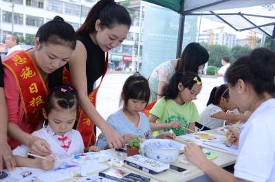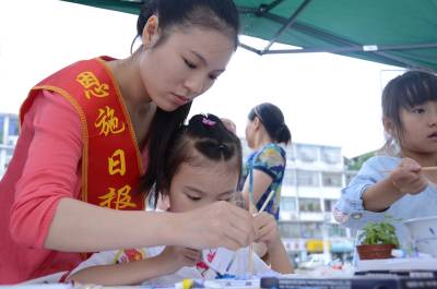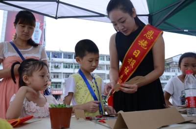 妙纸生花环节中,孩子们在志愿者的指导下,利用废弃报纸做成的纸浆进行创意绘画,制作各种形态的动物、植物等,通过活动可以增强孩子们的动手能力。有奖问答环节中,孩子们每答对3道题,就可现场获得一盆小绿植作为奖励。保护母亲河大作战环节中,志愿者们针对现在清江河中的垃圾开展游戏,让参与者了解在我们的母亲河中有哪些垃圾,以此增强大家的环保意识。绿色接力手工制作环节中,志愿者们指导孩子们用废纸盒制作手工玩具。(本报视界网 周光兵 摄)