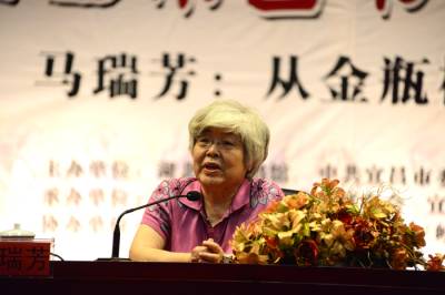 2014年6月22日上午,山东大学教授、知名学者、作家马瑞芳做客湖北宜昌市图书馆,开讲《从金瓶梅到红楼梦》。宽大的图书馆影像厅座无虚席。