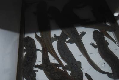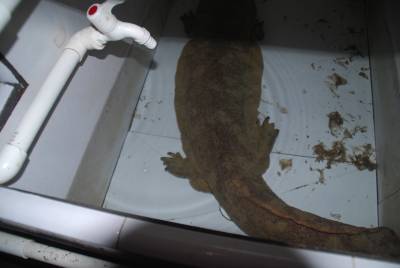 图为:蓝世界圈养的刺猬和娃娃鱼