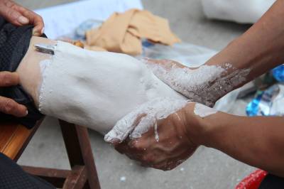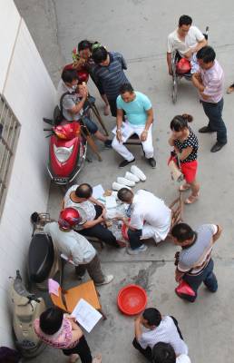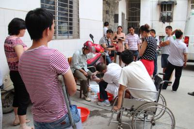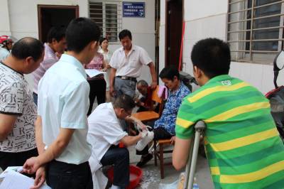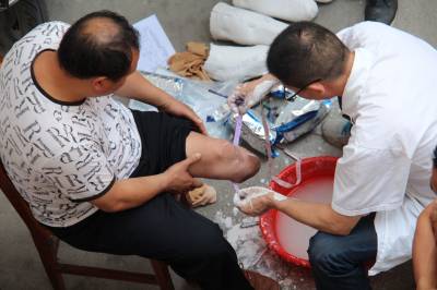 6月24日,医务人员为截肢残疾人定型取样。为使截肢残疾人朋友尽早脱离拐杖、轮椅,实现生活自理,当日,郧县残联邀请市假肢站医务人员为20名截肢残疾人定型取样,量身定做假肢。