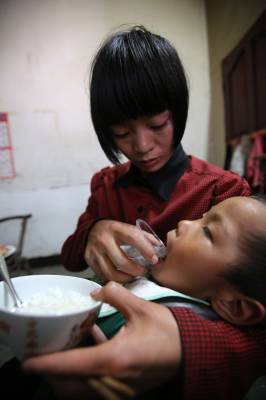 如今,朱艳琼和两个孩子只好寄居在一个亲戚家里,虽然家没有了,但朱艳琼为孩子治病的希望从来没有泯灭过,她觉得,自己就是孩子的家,她说;“虽然我自己的身体也不行,但社会上有很多好心人在鼓励我,为了感谢他们,我活一天,我就要为孩子治疗锻炼一天!”