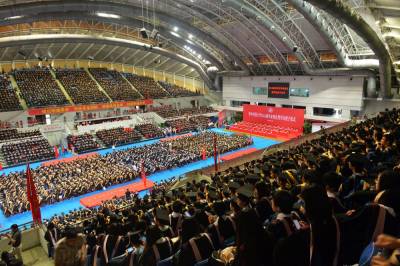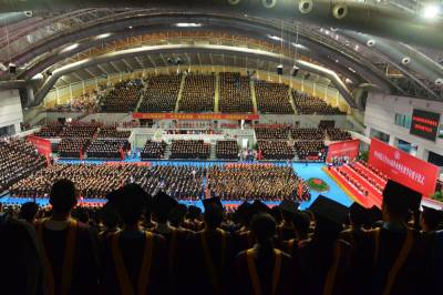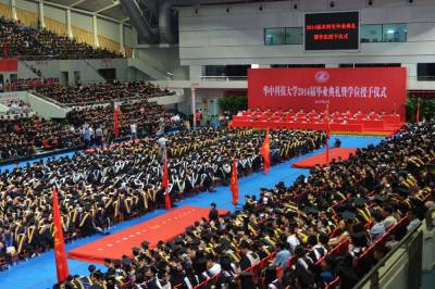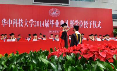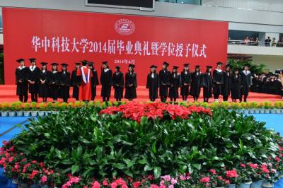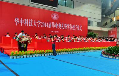 6月24日上午,华中科技大学2014年毕业典礼暨学位授予仪式在光谷体育馆隆重举行。新任校长丁烈云及全校师生和家长代表数千参加了毕业典礼。体育馆场面宏大,成为一片欢乐的海洋,师生们都换上了统一的盛装,现场气氛活力四射,青春飞扬,充分展示了当代大学生极好的精神风貌。各项仪式井然有序分步的进行,校长丁烈云作了重要讲话,学生和家长代表分别发言。接着是校长和导师为学子授予学位仪式,整个活动让人感动,令人难忘。校长、老师和家长对学生充满期待和祝福,鼓励学生们报效祖国,成为国家的栋梁之才。
