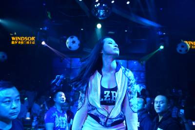 2014年6月24晚,香港影视歌艳星麦家琪做客宜昌某酒吧,载歌载舞,为某品牌洋酒做宣传。