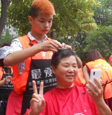 6月24日,武汉市民政局、市社会组织发展基金会、江汉区民政局等单位,结合党的群众路线教育实践活动,联合主办的武汉市社会组织公益项目社区行活动,在汉兴街常二社区举行。丰富多彩的便民、惠民、为民服务,深受社区居民的欢迎。一位社区老居民边剪头发边把手机当镜子,照出了幸福社区晚年生活美。