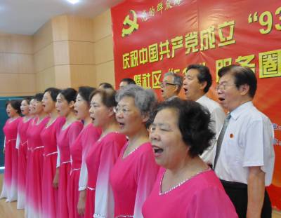 6月25日,武汉市江汉区新华街取水楼社区党总支、居委会,携手文明共建的中国银行湖北省分行、渤海银行武汉分行、市十二初级中学、武汉地产开发投资集团有限公司区司法局、市劳动就业管理局、小南湖公园、北冰洋投资公司等44个单位,结合党的群众路线实践教育活动,建立了"510"文体团体、志愿者服务、平安网络、校园文化、商务楼宇等五大便民服务圈,用实际行动纪念中国共产党成立93周年。同时还举行庆祝建党93周年的文艺汇演,13个精彩纷呈的节目,表达了党员干部社区居民永远热爱党,坚定不移听党的话,跟党走的决心。