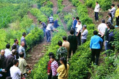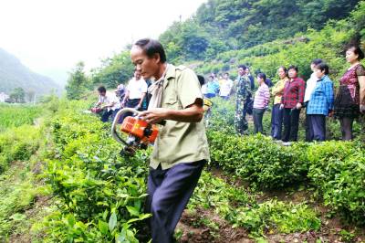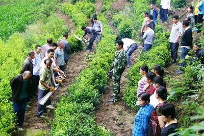 6月26日,竹山县农业科技人员深入麻家渡镇墩梓村为农民讲解示范茶叶管理实用技术。连日来,该县组织人社、农业、林业、畜牧等科技人员分赴全县各乡镇、行政村,围绕茶叶、核桃、水稻、玉米、作物套种等高产实用配套技术,深入田间地头,做给农民看、带着农民干,实地演示指导,传技术于农民,帮助群众开展抢收、抢种、抢管,一线服务“三夏”生产,真诚真情真心践行群众路线教育实践活动。