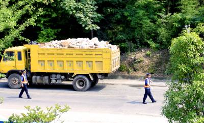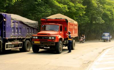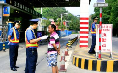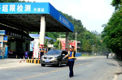 竹溪县公路路政执法人员,在6月全国第十三个“安全生产月”中,更觉责任重大,使命感更强。他们昼夜守护在确保人民生命财产安全的岗上。图为6月23日竹溪县公路局路执法人员在引导车辆上检测线检测和向司机宣传超限超载对国家财产和人民生命财产安全的危害性(视界网温大树摄)