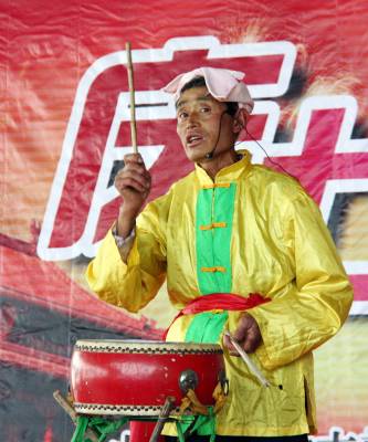 6月26日,鹤峰县中营镇村民向才东打起铿锵的花鼓,歌唱心中对惠民好政策的无限感激。当天,该镇中营村村民自发组织“庆七一”文艺汇演,60多位村民丢下农具简单扮妆,登台表演山民歌、快板、花鼓、莲湘及摆手舞、蒙古舞、现代舞,抒发心中对党的无限热爱与赞美。(本报视界网 陈勇 摄 )