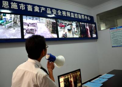 自2014年6月起,恩施市畜牧兽医局逐步建立动物卫生监督远程网络视频监控系统,远程监控畜禽养殖企业、生猪屠宰场和检疫申报点等10余家畜牧养殖、饲料加工等重点企业和检疫部门。据了解,该市在畜禽出入口处、饲养和屠宰加工车间、检疫检验口等关键位置设置2到8路摄像头,联网到恩施市畜禽产品安全视频监控指挥中心的监控室,执法人员可通过实时画面对企业饲养、饲料加工和动物检疫等环节进行监督,确保畜禽产品质量安全。 (本报视界网 王家政摄)