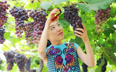 采摘美味葡萄,体验世外萄园。28号,在位于武嘉一级公路旁有着我县葡萄沟美誉的“南嘉•世外萄园”里,一串串似珍珠、如玛瑙的葡萄露出美丽面容、笑脸迎宾。