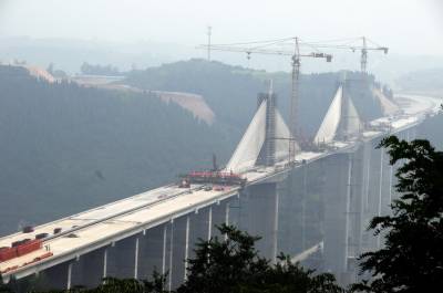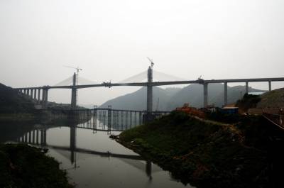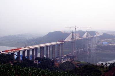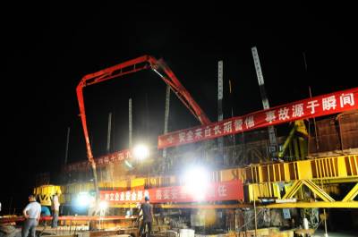 6月29日凌晨5时,郧县至十堰市的高速公路汉江特大桥全线合拢。合拢仪式于28日晚10:28分正式开始,在鞭炮和礼花燃放中建桥工人对南北两岸各2米宽边跨进行混凝土浇筑,至29日凌晨5时完成各2米宽36米长的浇筑任务,桥面全部合拢。