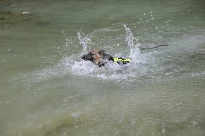 6月29日,保康县公安局刑警大队警犬训练员在引导警犬进行搜索训练。 地处鄂西北大山深处的保康县公安局刑警大队,为了战时刑侦破案的需要,于今年年初引进2头德国牧养犬。半年来,发挥警犬作用,先后侦破各类刑事、治安案件27起,被当地群众称为“警营神犬”。(视界网 王承鼎 欧阳智慧 王洁 摄)