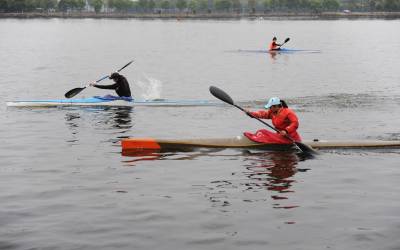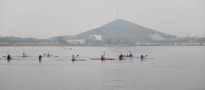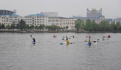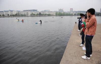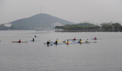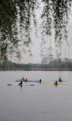 17日,湖北赛艇运动员正在东湖水上训练基地紧张训练。。。。。。视界网签约摄影师吴燕军摄