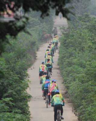 应城有骑行爱好者1000多人,其中活动会员400多人,有十多人参加环青海湖比赛和骑行青藏高原,获得好成绩。这次年龄最大的岁,最小的18周岁以上,购买了专业骑行意外保险。A、B组分别出发后,按照规定的线路骑行,在各个“加油站”报到、盖章;骑完规定的线路,按顺序盖齐各“加油站”签到章,视为完成骑行。A组设督察员六名,B组设督察员两名,督察员负责骑行过程中骑行纪律监督、执行,车辆简易维修;违反骑行纪律、作弊的,督察员有权警告、宣布取消骑行成绩。中途放弃,或者被督察员发现作弊一律视为未完成骑行。
