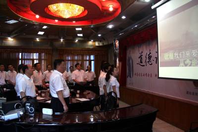 6月27日,建始县财政局全体职工在齐唱革命歌曲《歌唱祖国》。 当日,建始县财政局举行道德讲堂活动。活动以“百善孝为先”为主题,通过合唱革命歌曲、齐颂《弟子规》经典片段、观看《全国孝老爱亲道德模范孟佩杰》、聆听《我们应该怎样孝敬父母》专题讲座、做点评5个五个环节,弘扬孝道文化,营造“讲道德、做好人、树新风、创业绩”的浓厚氛围。(本报视界网图片库 卢家文摄) 地址:建始县财政局卢家文 电话:13972401505
