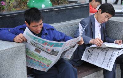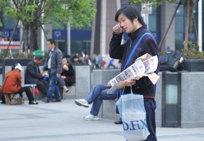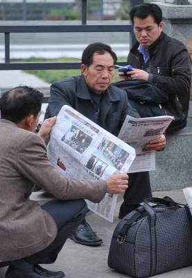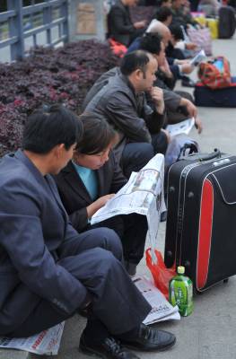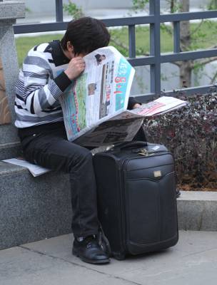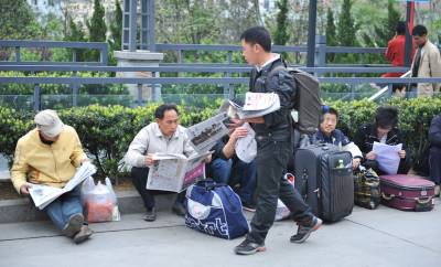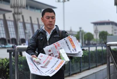 (春来到)17日,周六,武昌火车站。几位大学生模样的小伙子在卖报纸,一份《武汉晚报》,一份《长江日报》外加1一盒香喷喷的纸巾总共才一元钱,他们在人群中穿梭,以自己的辛劳为候车的旅客提供精神食粮,卖报的过程虽然有酸也有苦,这些”报童”脸上仍然写满了自信与快乐。买报的、卖报的、读报的成了一道风景,本报视界网吴燕军摄