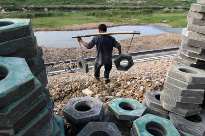 房县奋战高温兴修水利 6月29日,房县施工人员头顶烈日搬运植生块,铺设马栏河河堤生态护坡。正值高温酷暑季节,该县大批水利干部、施工人员奋战在加固河堤、农村饮水、水土治理等重点水利工程现场,抢修、建设水利工程。目前,完成投资7954万元,除险河堤10公里,新修渠道103公里,建设饮水工程11处,治理水土流失面积10平方公里。 本报视界网 张启龙 摄 湖北房县水务局 张启龙 邮编:442100 电话:0719-3247077