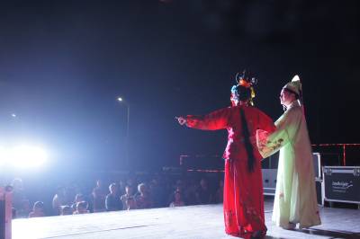 谷城县剧团根据流传在谷城及周边地区的古老剧种《湖北越调》,成功编排出优秀传统剧目《琴房送灯》,公演后受到专家和观众称赞。随着时代发展,《湖北越调》濒临失传,谷城县文化馆对其挖掘、整理、申报获得省非遗保护项目。此剧表现的是明代一位书生进京赶考途中借宿发生的一段生动的爱情故事,为观众送上一场传统剧目的好戏。图为谷城县剧团演员正在演出该剧。 詹秀丽 摄