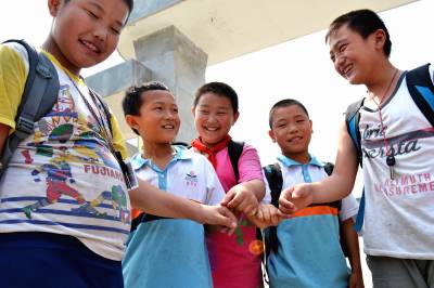 7月1日,500多名结束了期末考试的湖北省郧县柳陂镇中心小学的“微球迷”笑逐颜开,庆幸自己搭上观看世界杯1/8决赛的“末班车”,他们或“拉勾”或“叠板”,相互约定,暑期里共同关注世界杯盛况,一起为世界杯“加油”。