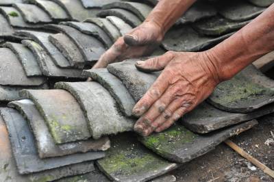 瓦匠,是湖北西部山区民间手工艺“九佬十八匠”的其中之一。捡瓦时,瓦匠师扫掉屋顶上的灰尘,把存年裂碎的土瓦清理掉,再补充理顺,补充瓦面,以防漏雨。“捡瓦”看似简单,实则不易,捡瓦需赤脚上屋顶,把土瓦成片地掀起来,在按阴阳交错地铺上去。捡瓦是技术活,需慢手慢脚,不能把脚直接踩到瓦面上,而要踩在椽角处,捡瓦要细心,擅于观察,捡的瓦要能经受风雨的考验。