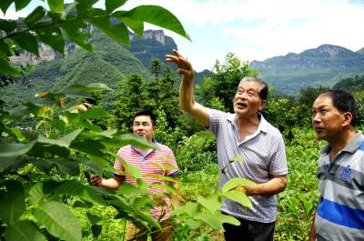 “充分利用村里的地域优势,把核桃发展成村里的特色产业,让核桃树真正成为村民的‘致富树’”。廖兆甫说。7月2日,在恩施市红土乡稻池村水井湾组,老党员廖兆甫义务指导周边村民科学管理核桃树。