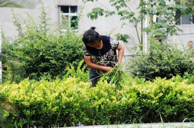 7月3日,郧县园林所的园林工们正在各个公共场所养护绿化带和草坪。为创建文明,卫生和园林生态城市,郧县不断投入人力,物力,财力加大城市绿化建设力度,至南水北调中线工程畜水后把郧县打造成水源区园林生态城。 夲报视界网周家山 摄