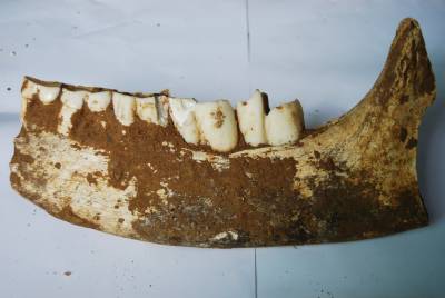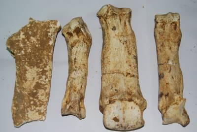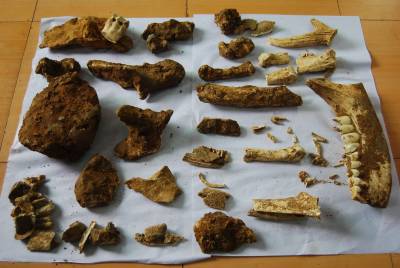 (签约摄影师汪盛华、孟希承)4月16日下午,宣恩县椒园集镇的珠山粮油公司储粮仓库新建的施工工地,施工人员挖掘出一批类似骨头的石头。据恩施自治州文物局、博物馆的技术人员现场初步签定,这批类似骨头的石头是古生物化石(图1),这些化石属动物化石,种类较多,有下颌骨化石(图2)、骨化石(图3)、角化石(图4)、牙齿化石(图5)等等,具有极高的多方面考古研究价值。目前,这批古生物化石被放在椒园派出所受到特别保护,施工工地暂停施工、受到保护(图6)。据了解,这批古生物化石起源于何时、已有多少年历史、是怎样形成的、具体具有哪些考古研究价值等,有待于专家进一步签定、研究、定论。