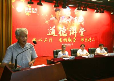 7月3日,湖北恩施州咸丰县高乐山镇梅坪村四组75岁高龄的田文安老人深情讲述供电员工林丽的先进事迹。当天,国网恩施供电公司举办“道德讲坛”暨林丽先进事迹报告会。