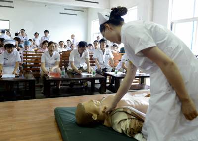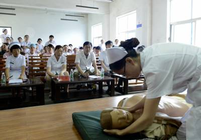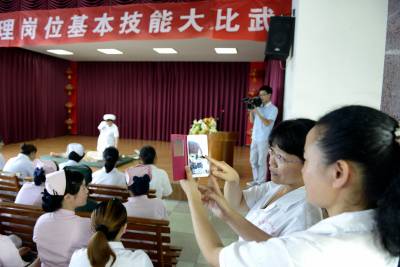 宜都市二医院举行护工技能比武 7月3日,宜都市第二人民医院的护工在进行技能比武。当天,全院8个科室共24名护工代表参加比武,比武项目为“单人徒手心肺复苏操作”。通过比武,提高了护工护理技能,激了护工学习护理技能的热情。
