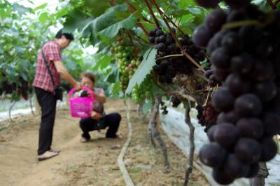 云梦县大力发展有机水果种植,伍洛镇中丁倪国高精品葡萄园有40多个葡萄大棚,全部采用大棚、无公害、有机肥种植,实行控产,提高品质。该园有京亚、京蜜、夏之红、红巴拉提、辉煌、巨峰、京香玉、超康早、金手指、吉斯玛早、红乳等优质葡萄品种30多个,眼下有机葡萄陆续成熟上市,迎來葡萄採摘季。本报视界网 陈保忠 摄