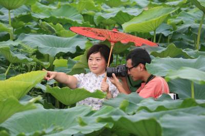 7月6日,来自武穴城区的数十名上班族驱车来到石佛寺董家山村千亩荷塘尽情拍摄!地处鄂东的武穴市有许多湖泊和湿地资源,该市农民不再千篇一律种粮、养鱼,而是因地适宜的发展观光旅游农业,以求得最大效益!湖北中农华威有限公司因势利导,主办武穴市首届“中农华威杯”荷花摄影大赛,吸引一批摄影爱好者一展才华。本报视界网冯怡红摄