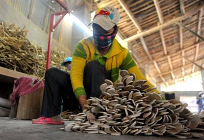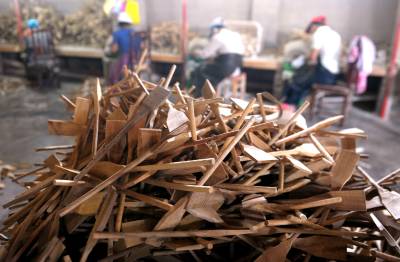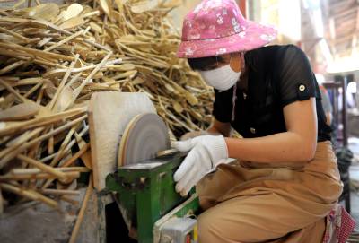 7月6日,在恩施市盛家坝乡家旺木业专业合作社,当地留守妇女在加工赶制西式餐具。