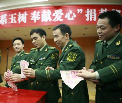 > ”情系玉树,奉献爱心”——省武警总队首长机关开展向青海玉树地震灾区捐款活动