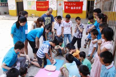 7月7日,笔者走进竹山县宝丰镇天英留守儿童托管中心,志愿者和孩子们一起唱歌、下棋、做游戏、搞演练……不时传来阵阵欢笑声,留守儿童享受着幸福关爱的精神大餐。连日来,由湖北医药学院第一临床学院廖佳龙老师带领6名2012级和2013级学生组成的大学生暑期社会实践服务团,赴竹山县宝丰镇天英留守儿童托管中心进行为期一周的以“关爱农村留守儿童,传递社会正能量”为主题的社会实践活动,这也是第一个深入该县参加今年湖北省妇联彩虹行动大学生家庭教育志愿者暑期服务实践活动的团队。