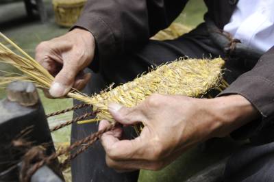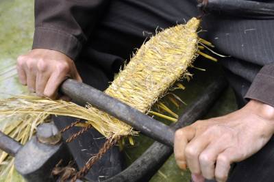 上世纪七八十年代,草鞋还是湖北省恩施土家族苗族自治州农民劳作时的必需品,打草鞋一度是当地农民基本的生活技能之一。农民将收割后的稻草翻晒,用铁耙去除稻草叶,反复锤打使稻草变软后搓成细细的草绳,编织成鞋。制作出的草鞋通风、凉爽,而且低碳、环保,因其成本低廉,是生活不宽裕农民的最爱。如今,随着农民生活水平的提高,穿土家草鞋的人越来越少,制作土家草鞋的民间艺人也屈指可数,市场越来越小,传统土家草鞋制作成为即将消失的技艺。
