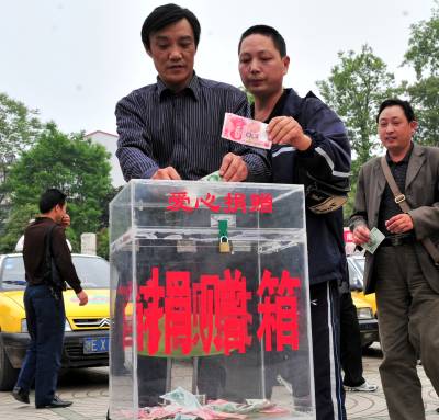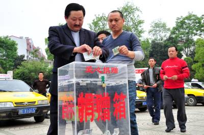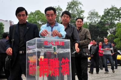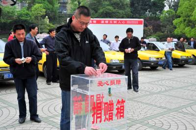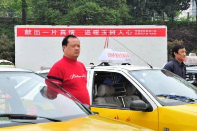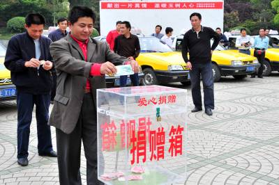 2010年4月19日,湖北省宜昌市夷陵区出租车行业”献出一片爱心、温暖玉树人心”抗震救灾宣传活动正式启动,45名的士司机代表现场向玉树地震灾区捐款2545元。目前,宜昌市夷陵区出租车等各行各业为玉树捐款活动正在进行之中。视界网签约摄影师张国荣摄
