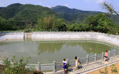 塘水清澈见底,四周安全护栏。7月8日,笔者拍摄的竹山县大庙乡全胜村二组建起的生态景观塘之一。据悉,2014年该县加强全县水利薄弱环节和强化水利基础设施建设,加快推进农田水利、饮水安全、水土保持等15大重点工程建设,争取中央和省级投资1亿元以上,完成年度水利投资2.9亿元。