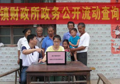 7月9日,黄梅县新开镇财政所工作人员在为边洲村村民提供惠农补贴流动查询服务。为使农村群众及时了解粮食直补、良种补贴和综合直补等各项惠农资金分配使用情况,今年来,该县财政局组织专班,不定期赴村组、田野等地,设立财政政务公开流动查询点,开展惠农政策及资金网络流动查询活动,让群众在家门口就能了解到自己的各项惠农资金发放情况,以实际行动践行了群众路线。(视界网 吴志雄 摄)