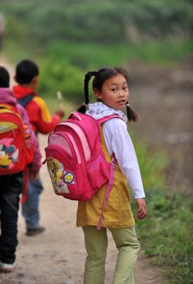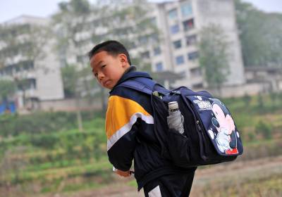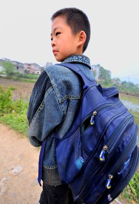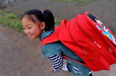 20日早上6:30—7:20之间拍摄的去宣恩县珠山镇宝塔小学上学的孩子和他们的书包。相对于前些年,在社会减轻学生负担的呼吁下,同龄孩子的书包的确有所减轻,然而在现场,不仅看到学生书包的体积大,用手去提学生的书包,其重量也是足够学生们背一回的。特别是低年级学生的书包,其重量与年龄多少有些不相适应。(视界网签约摄影师:宋文摄)
