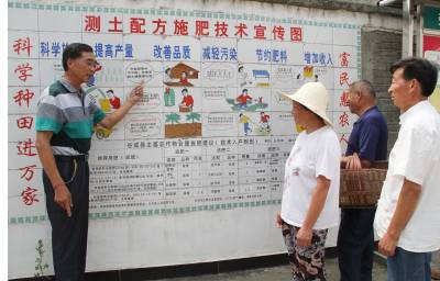 测土配方进村入户 7月9日,冷集镇人大代表、镇农技推广中心主任发正在朝阳湖村给农民宣讲测土配方知识。如何科学施肥、保护土地、提高土地产出率?谷城县冷集镇人大发挥县、镇人大代表分布广,来自各个战线的优势,组织人大代表开展为民服务活动,共培训农民3100多人,送致富信息460多条,受到农民的称赞。 本报视界网马明刚摄