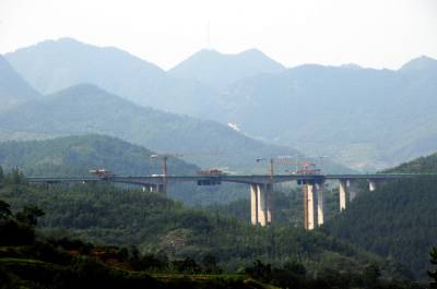7月7日,郧县至十堰市的高速公路头堰大桥,头堰大桥全长579米,宽24.5米,双向4车道,主墩高70米,由中铁十四局集团二公司承速,工期80天。