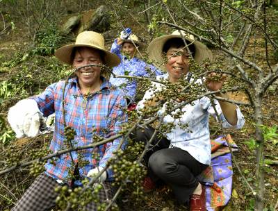 宜都枝城花椒开园 7月10日,宜都市枝城镇纸坊冲村一组余德亚的花椒园里,农民们正采摘花椒。余德亚种有20多亩花椒,今年可产鲜椒1000多公斤,收入1.2万元。纸坊冲村现在花椒1500多亩,今年可产花椒2.5万公斤,产值30多万元。