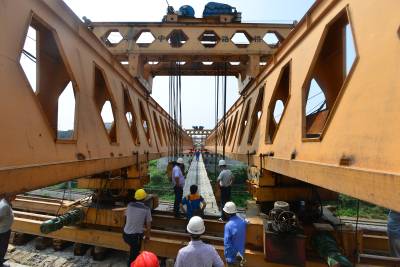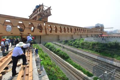 荆门市最大单体跨铁路桥实施T梁吊装"大手术&quo