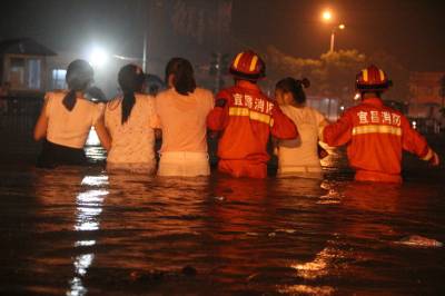 > 暴雨突袭湖北宜昌 城区内涝20余人被困暴雨获救