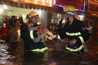 7月10晚11点左右,湖北省宜昌市迎来最大降雨量,城区黄河路口发生内涝灾害,附近一家餐馆内有近20人被困在2楼,其中包括一名儿童和两名八旬老人。 宜昌市消防支队接警后迅速出动20余名官兵到场施救,在两个小时救援中先后营救被困群众30余人,及时疏散群众100余人。