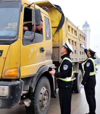 2010年4月20日,湖北省宜昌市夷陵区源头治超”春雷行动”正式启动,该区交警大队牵头,联合运管、城管等部门,将治超从”路面”延伸至”源头”,在采石、采矿厂及城郊结合部设立治理超载执勤点,严管超限超载车辆上路,从源头约束车主超限超载运输行为。视界网签约摄影师张国荣摄