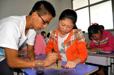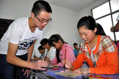暑假期间,武汉大学经济与管理学院11名大学生志愿者来到恩施市红土乡留守儿童托管中心。开展为期10天的暑期义务支教活动。他们为当地60多名留守儿童辅导暑假作业,教授安全健康等知识,并开展音乐、舞蹈、书法、绘画、棋艺、等艺术特长培训,拓展山沟沟留守儿童的活动空间,为留守儿童带去了丰富多彩的文艺节目,丰富了留守儿童暑假生活,深得家长和留守儿童的欢迎。(视界网彭绍峰翟玉持摄)